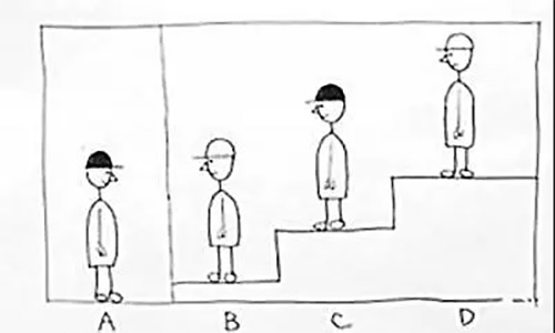 试题5:在一房间里有4个小孩,2 个戴黑帽,2个戴白帽。但他们都不知道自己戴的是什么颜色的帽子。A与B、C、D之间有一堵墙,所以看不见他们。同时,A、B、C、D谁都不能摘下帽子看,也不能回头看。片刻后,4个小孩中有人猜中了自己帽子的颜色。